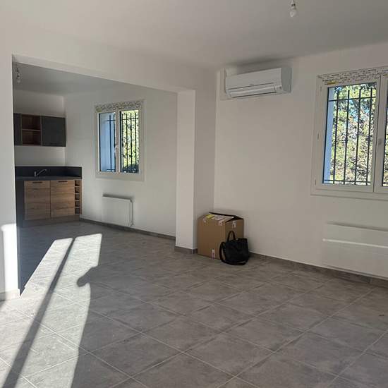 AIX LES MILLES route de roquefavour, Située à quelques minutes du centre , maison rénovée de 141m² sur 1500m² de terrain clos, comprenant un séjour de 35m² , un hall / salon de 17m² donnant tous les deux sur une vaste terrasse exposée sud. La maison dispose d'une cuisine de 15m² entièrement aménagée et un cellier / buanderie, 3 belles chambres avec placard, une salle d'eau avec double vasque et seche serviette, wc séparé. Espace bureau télétravail ou chambre d'appoint de 14m² à l'étage. La partie jour est climatisé, double vitrage. LIBRE DEB...