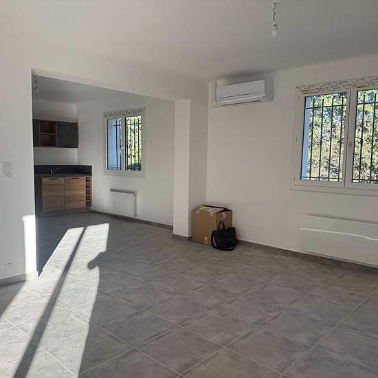 Aix les milles route de roquefavour, située à quelques minutes du centre, maison rénovée de 141 m² sur 1500 m² de terrain clos, comprenant un séjour de 35 m², un hall / salon de 17 m² donnant tous les deux sur une vaste terrasse exposée sud. La maison dispose d'une cuisine de 15 m² entièrement aménagée et un cellier / buanderie, 3 belles chambres avec placard, une salle d'eau avec double vasque et seche serviette, wc séparé. Espace bureau télétravail ou chambre d'appoint de 14 m² à l'étage. La partie jour est climatisé, double vitrage. Libre...