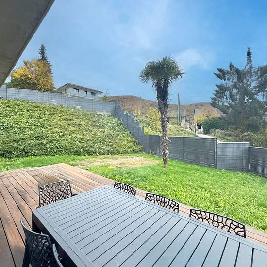 Découvrez cette superbe villa moderne de 180 m² construite en 2018, idéalement située dans un secteur calme et résidentiel d’Allinges. Elle offre de beaux volumes, une luminosité exceptionnelle et une vue dégagée sur les champs ainsi que sur le lac Léman, idéale pour une famille recherchant confort et sérénité. Au niveau inférieur, vous trouverez une grande cour goudronnée permettant un stationnement aisé, ainsi que deux garages équipés de portes motorisées. Ce niveau comprend également deux pièces à aménager selon vos envies, ainsi qu’un es...