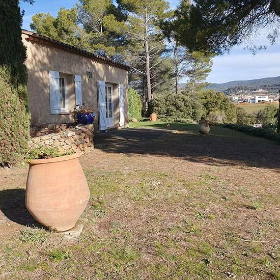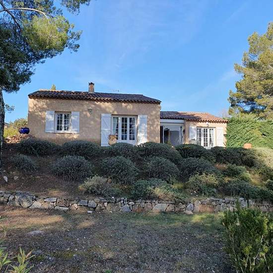 Aups - villa 110 m² dans un lotissement calme, une villa de 109.98 m² comprenant une cuisine aménagée, une salle de bains avec wc, 3 chambres, un salon / séjour avec cheminée insert, un cellier. Terrain clos et arboré. Abri de voiture. Chauffage et eau chaude par chaudière au gaz. Dpe : d.