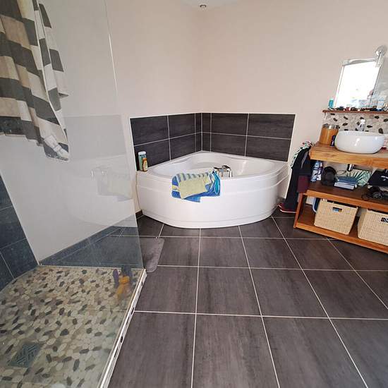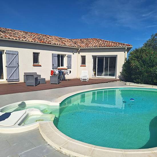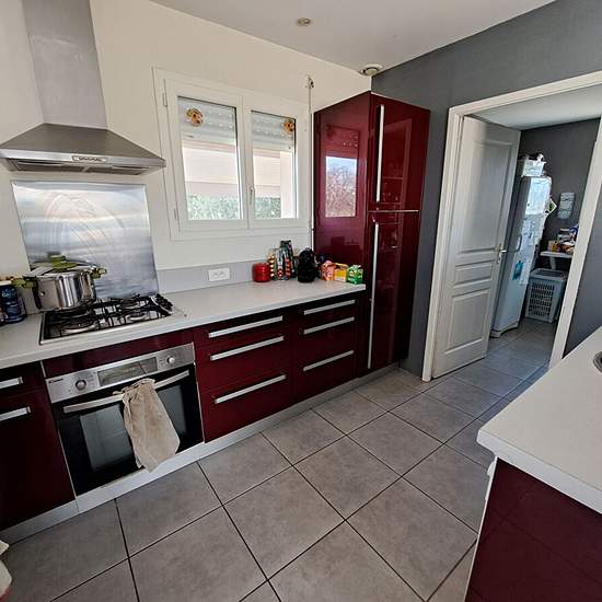 Libre début février. Maison de plain-pied récente, située à moins de 10 minutes du collège de Penne d'Agenais. Comprenant : un espace de vie avec salon et cuisine ouverte, un cellier attenant, 4 chambres avec placards intégrés, dont une suite parentale avec salle d'eau et dressing, un double garage avec mezzanine, un jardin de 2007 m² entièrement clôturé avec terrasse couverte et piscine sécurisée par une couverture. Chauffage : poêle à granulés + radiateurs électriques Entretien piscine inclus dans les charges hors produits.