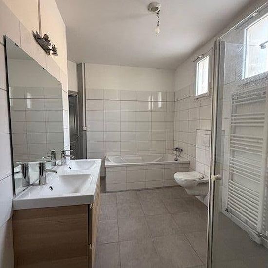 Très jolie maison de ville comprenant entrée, dégagement, salon, salle à manger, chambre, salle de bains, WC, cuisine. Au premier étage, quatre chambres, salle de bains, WC, grenier. Terrain sur l'arrière. Disponible le 15 juillet 2026.