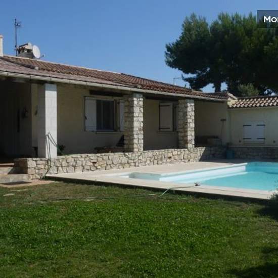 Single-storey house with 5 rooms nicely furnished of 160 m2, a plot of 1100 m2 closed, a private parking, a garden with trees, swimming pool, southern exposure. Located in Bezouce, 10 min from Nîmes and motorway A9, exit 24 Nîmes-est Services included in rent & charges: Water Internet Parking Services not included in rent & charges: Electricity Heating The security deposit of 1200 € must be paid, before the keys are handed over, by bank transfer.