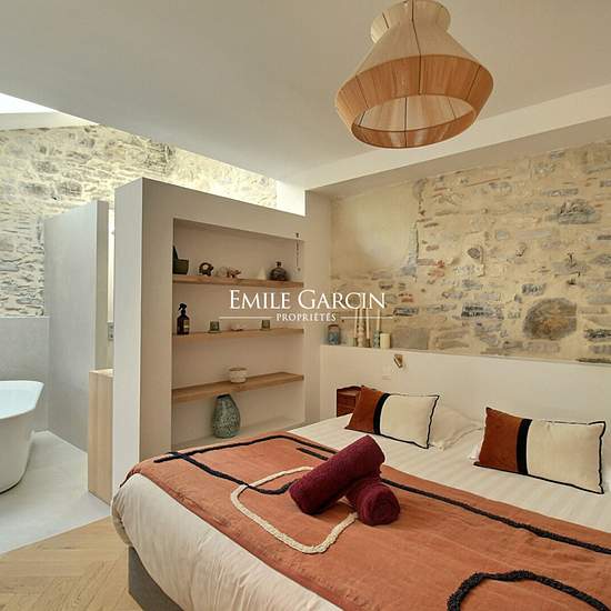 Cette belle maison, classée ***, entièrement rénovée en 2022, offre 136m² habitables alliant le charme de l'ancien au confort moderne est disponible jusqu'au 30 avril 2026. Au rez-de-chaussée, un vaste espace de vie baigné de lumière s'ouvre sur la terrasse. La cuisine équipée, dotée d'une grande baie à galandage donnant sur l'olivier, la piscine et le bar extérieur, communique avec un salon convivial équipé d'un grand canapé et d'une télévision connectée. Une suite parentale avec dressing, baignoire îlot et douche à l'italienne s'ouvre sur ...