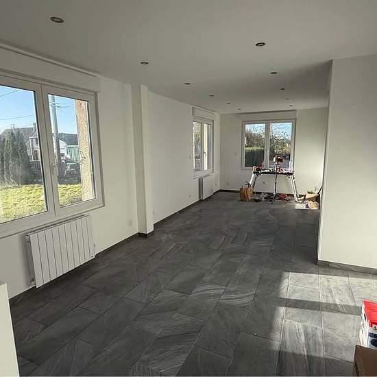 A louer maison individuelle de plain-pied, 90 m², score DPE énergétique A La maison a été refaite entièrement à neuf et isolé aux normes 2025. Pompe à chaleur, climatisation, chaud et froid réversible dans toutes les pièces Ballon thermodynamique Cuisine entièrement équipé Trois chambres Salon salle à manger ouvert sur la cuisine Sous-sol 100 m² Garage, plus 2, places de parking Terrain de 1000 m² Disponible dès maintenant