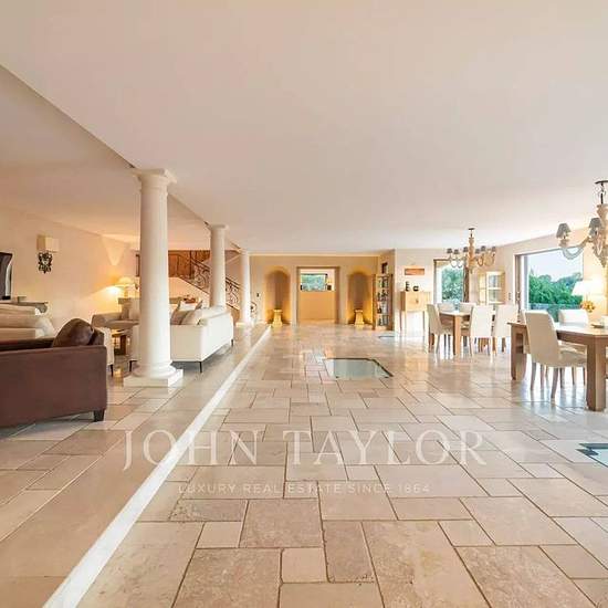 Idéalement située à seulement 10 minutes de Saint-Paul-de-Vence et des plages de Cagnes-sur-Mer, à 15 minutes de l’aéroport de Nice, cette villa d’exception de près de 550 m² s’étend sur un terrain paysager d’environ 2 488 m², offrant un cadre de vie luxueux et serein. Rez-de-chaussée : Hall d’entrée Double séjour avec cheminée Salle à manger élégante, baigné de lumière Cuisine séparée entièrement équipée Suite parentale spacieuse avec salle de bains privative comprenant baignoire, double vasque, deux douches et WC indépendant À l’étage : De...