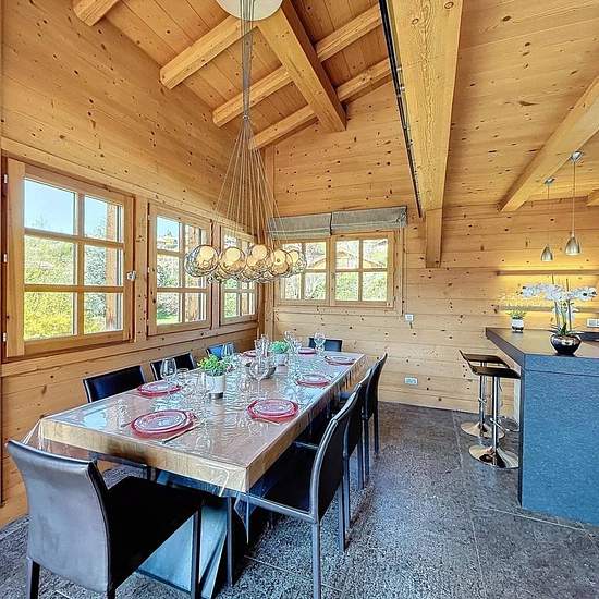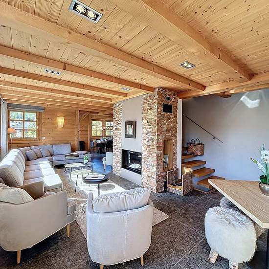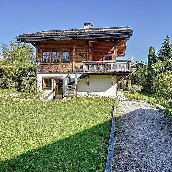 Très beau chalet, de 2010, d'une superficie de 180 m², situé dans un secteur très calme à proximité du village de Combloux et du Lac Biotope. Il se compose d'une entrée, dressing, un WC invités, une chambre avec un lit en 160 et sa salle de douche et WC, une belle et lumineuse pièce de vie avec séjour, cuisine ouverte tout équipée (sans congélateur & freezer), salon avec cheminée, accès sur une belle terrasse Sud face au Mont Blanc et accès au jardin. A l'étage une mezzanine bureau, un espace salon TV. Au Rez de chaussée : une chambre avec d...