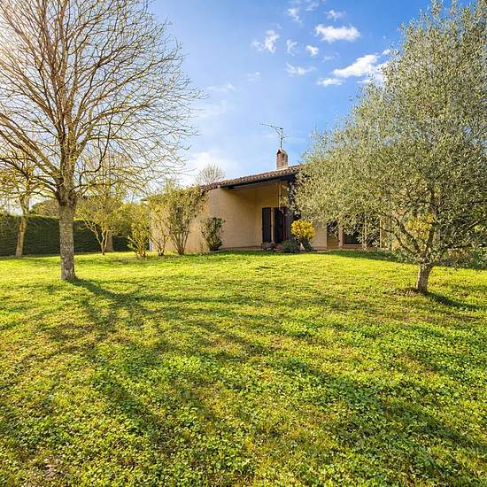 Proche centre du village Cornebarrieu, voici une spacieuse villa T5 d'une surface 157m² avec garage sur un terrain joliment arboré de 2500m². La maison dispose d'une cuisine neuve, meublée et équipée électroménager neuf, (plaques, four, hotte, lave vaisselle), d'un grand salon avec cheminée, de trois chambres en rez-de-chaussée avec placards, d'une salle de bain et WC séparé. A l' étage une grande chambre avec salle d'eau attenante et WC . Libre immédiatement.