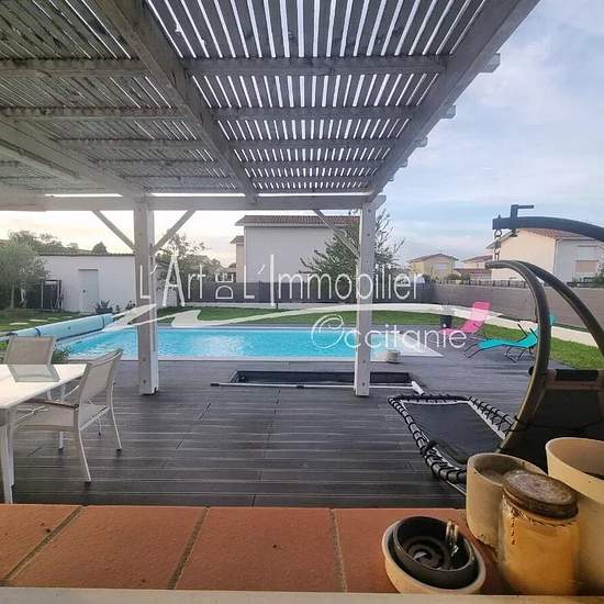 Maison de plain pieds, belles prestations, de type 4/5, lotissement résidentiel. Son intérieur vous propose, son entrée/dégagement, placard, séjour, cuisine équipée, cellier, bureau, dégagement nuit, 3 chambres, salle de bains. Terrasse, piscine, l'ensemble édifié sur un terrain clos de 752 M². Loyer 1415 €/mensuel + 65 € de provisions sur charges (taxe ordures ménagères, hivernage/mise en eau jardin). Honoraires d'agence 1126.70 € (visite, dossier, rédaction bail) + Etat des lieux 336 €. Libre le 1er novembre 2025.
