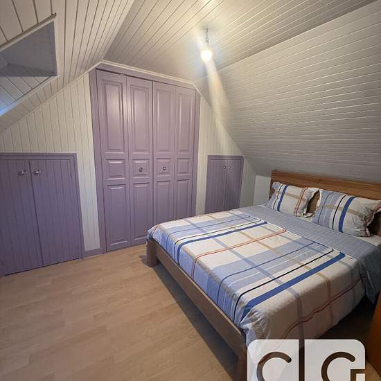 Dans le centre d'Edern, vaste maison meublée familiale de type 5. Elle comprend une grande pièce de vie avec cuisine ouverte aménagée et équipée, une salle de douches, une grande buanderie et des WC. A l'étage : 4 chambres avec placards et un bureau. Vous pourrez également profiter d'une terrasse, d'un double garage et de nombreux rangements.