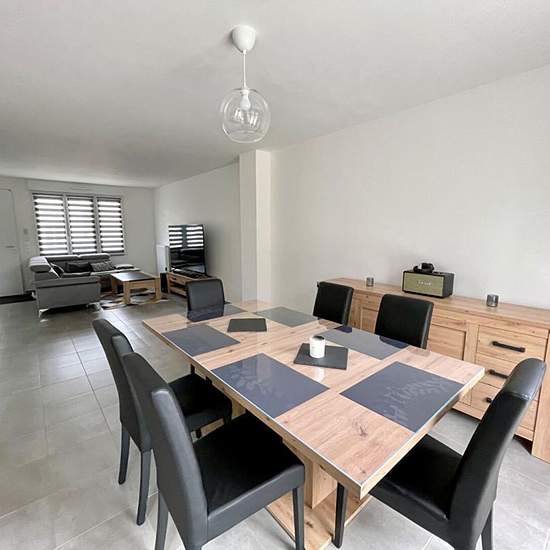 Dans un secteur pavillonnaire calme et verdoyant, maison très récente de type F6 offrant de belles prestations : au rez-de-chaussée, une cuisine aménagée ouverte, sur le séjour, une salle d'eau avec WC et un rangement; au 1er étage, un palier desservant 4 chambres, une salle de bains et un WC. 1 garage et 1 jardin clos. Libre le 2 mars 2026. Dossier de candidature (photos 14 et 15) complété des pièces demandées à envoyer sur EMAIL