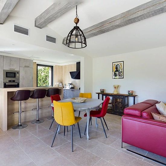 My Home Connexion vous propose en exclusivité cette magnifique villa rénovée de 120 m², idéalement située au coeur du pittoresque village d'Eygalières. Dès l'entrée, vous serez charmé par un double séjour baigné de lumière, une cuisine moderne entièrement équipée ainsi qu'une chambre disposant de sa salle d'eau privative. Ce niveau comprend également un WC indépendant et une buanderie fonctionnelle. À l'étage, deux belles chambres lumineuses se partagent une salle d'eau contemporaine et un WC séparé. À l'extérieur, profitez d'un cadre enchan...