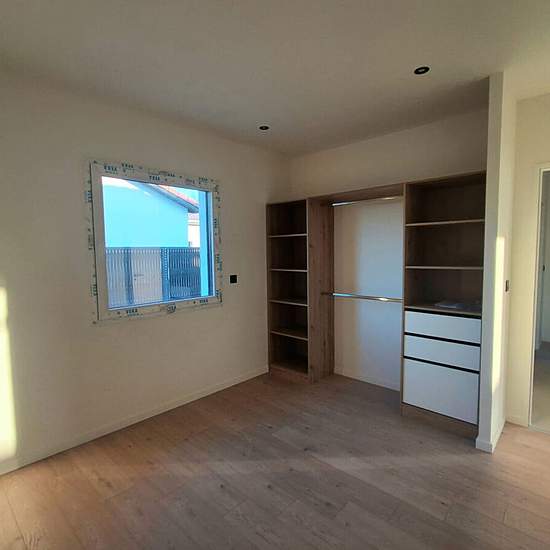 Maison neuve T5 106 m² à Feurs 39 rue Guichard Dans un secteur calme, à proximité immédiate de la gare, à 5 minutes du centre-ville et de toutes les commodités et commerces (écoles, transports, services). Maison d'une surface habitable de 106 m², construite sur un terrain de 481 m². Elle comprend une cuisine entièrement équipée, un séjour lumineux, une suite parentale avec dressing et salle d'eau privative, ainsi que deux chambres supplémentaires, une salle d'eau indépendante et des WC séparés. La maison est louée non meublée. Cuisine équipé...
