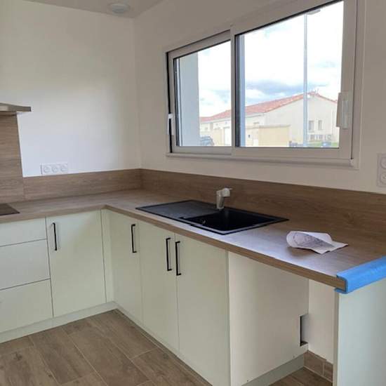 Fréjairolles : Maison à louer de plain-pied, neuve 2023 dernières normes énergétiques et handicapés dans secteur calme proche des écoles et des commerces - 4 Chambres avec placard aménagés - Salle d'eau avec douche et baignoire -grand Salon Salle à manger - Cuisine très lumineuse. Cuisine équipée sur mesure avec alimentation pour frigo américain. Volets électriques, grandes bais vitrées - Cellier - Garage porte large automatique -Chauffe-eau thermodynamique. Loyer 1330 € / mois - 15€ charges OM - Dépôt de Garantie 1330 € Honoraires d'agence ...