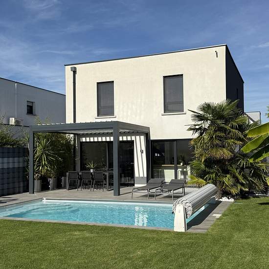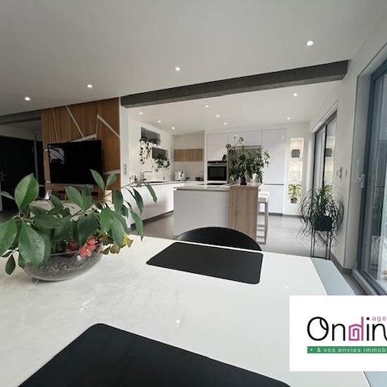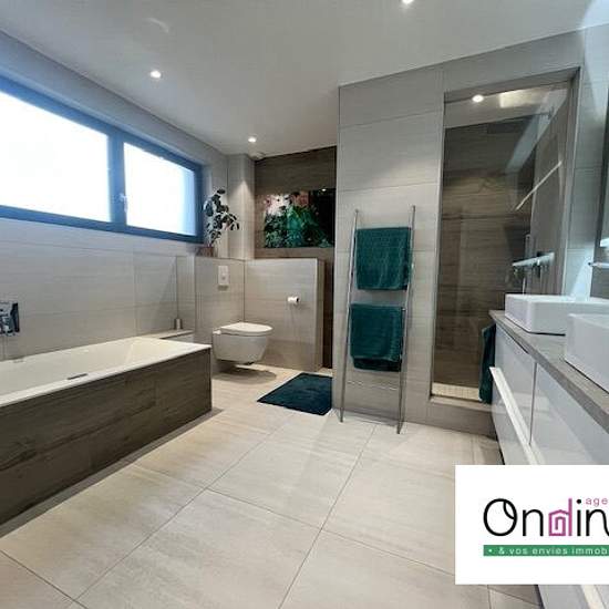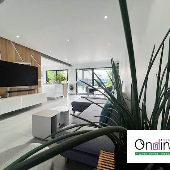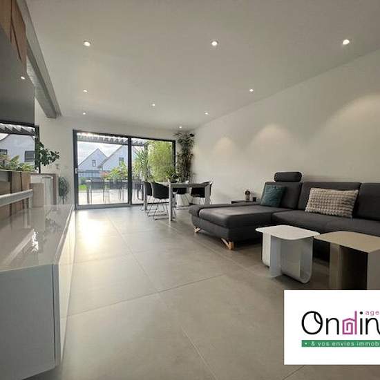 !!! LOCATION MEUBLÉE GRAND STANDING !!! Venez découvrir grâce à votre agence immobilière Les Ondines – Haguenau cette splendide maison contemporaine mitoyenne par le garage, très récente et entièrement meublée. Location meublée – prestations haut de gamme – Piscine chauffée – Jardin clos avec arrosage automatique – Garage – Terrasse – Pergola bioclimatique – Buanderie – Climatisation – Ballon thermodynamique – Triple vitrage – Volets électriques connectés Maison cubique 4-5 pièces composée comme suit : • une entrée avec rangements • un spaci...