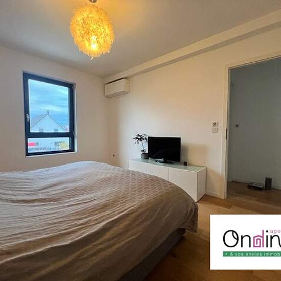 !!! LOCATION MEUBLÉE GRAND STANDING !!! Venez découvrir grâce à votre agence immobilière Les Ondines – Haguenau cette splendide maison contemporaine mitoyenne par le garage, très récente et entièrement meublée. Location meublée – prestations haut de gamme – Piscine chauffée – Jardin clos avec arrosage automatique – Garage – Terrasse – Pergola bioclimatique – Buanderie – Climatisation – Ballon thermodynamique – Triple vitrage – Volets électriques connectés Maison cubique 4-5 pièces composée comme suit : • une entrée avec rangements • un spaci...