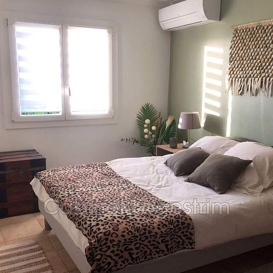 À louer sur la commune de Garons, dans un quartier très calme, une coquette villa meublée de 115 m² habitables comprenant en rez-de-chaussée, une entrée, séjour avec cuisine ouverte de 42 m² climatisé et avec poêle à bois, un espace bureau, 2 chambres dont une avec kitchenette, une salle d'eau et toilettes séparés. A l'étage, 2 chambres et salle d'eau avec toilettes. À l'extérieur, le terrain de 600 m² est clos et arboré, il bénéficie d'une jolie terrasse abritée, avec vue sur le jardin. Garage, eau du bas Rhône possible, fenêtres PVC, clima...
