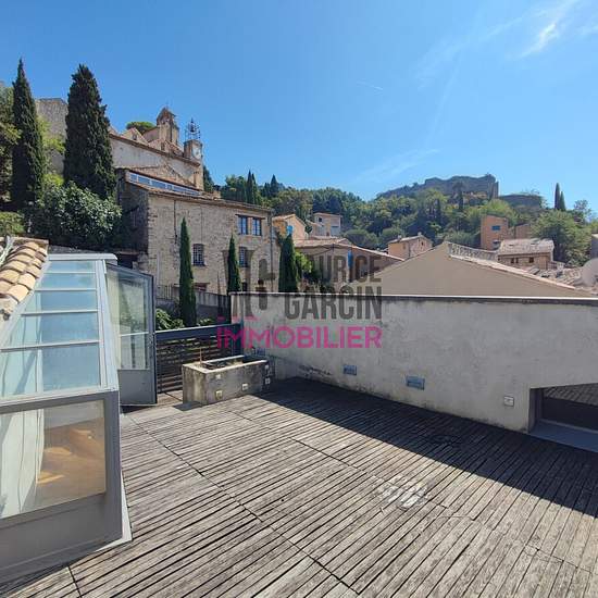 Un bien rare au coeur du village de Gigondas, maison de ville entièrement rénovée avec magnifique terrasse panoramique sur le toit. D'une superficie habitable de 138.14m² sur 3 niveaux, elle comprend au rez de chaussée : entrée et local à vélo, au 1er étage : cuisine aménagée et équipée, séjour, chambre, salle d'eau et toilettes indépendant, et au 2ème étage, configuré comme un loft : grand séjour/cuisine aménagée et équipée, chambre, bureau et salle de bains avec douche, baignoire et toilettes. La taxe sur les ordures ménagères, l'entretien...