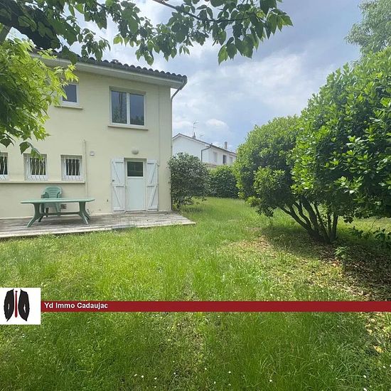 Idéalement placé au centre de Gradignan, proche des commerces, des écoles, des parcs... Maison mitoyenne de 89 m2 comprenant au rez-de-chaussée un salon, salle à manger, une cuisine fermée équipée, un cellier et un wc séparé. A l'étage trois chambres avec placard, un bureau et une salle de bain. Mode de chauffage : chaudière gaz avec radiateur Ballon électrique pour l'eau Un agréable jardin d'environ 500 m2 avec la possibilité de mettre un cabanon, stationner les véhicules... Location meublée, loyer 1 500 euros hors charges (eau+ gaz+eau). G...