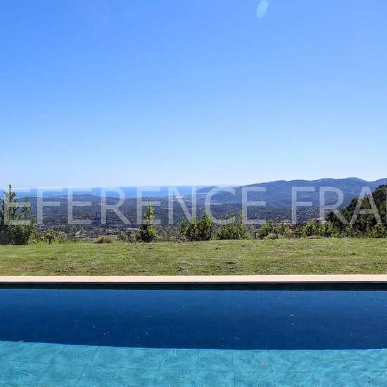 Exceptionnel. Disponible début janvier 2026. Au calme absolu. Superbe vue panoramique mer Sud. Calme absolu. . Villa meublée récente et contemporaine de 220 m² approx (de 2020) sur beau terrain plat de 1500 m² approx avec piscine couverte (couverture roulante électrique). Grand séjour avec cuisine américaine (ilot central), arrière cuisine / buanderie, 4 magnifiques chambres en suite avec salle d'eau, dressing et terrasse + 1 bureau (ou 5ème chambre). Pour contrat longue durée possible. ..........................................................