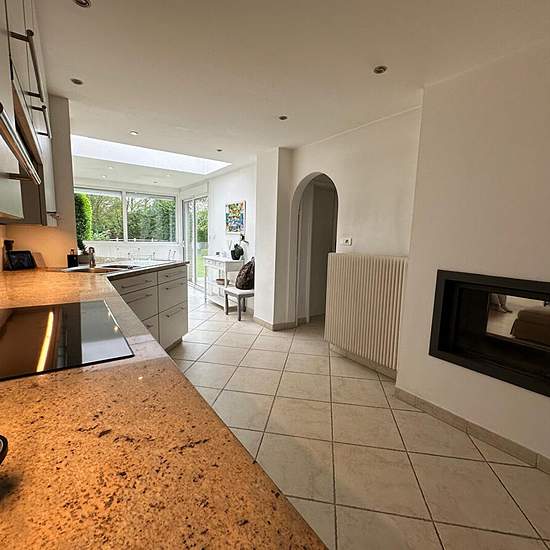 A proximité des grands axes, à 15 minutes des écoles, maison individuelle de standing meublée de 200m² habitables sur 2 niveaux .Belle entrée desservant salon parqueté avec CFDB et belle vue sur le jardin , salle à manger, grand espace bureau, cuisine équipée avec espace repas 2 chambres et salles de bains. A l'étage un palier distribuant 2 autres chambres avec rangements, salle de bains et lingerie. Jardin clos à l'abri des regards. disponible au 15/08/2025