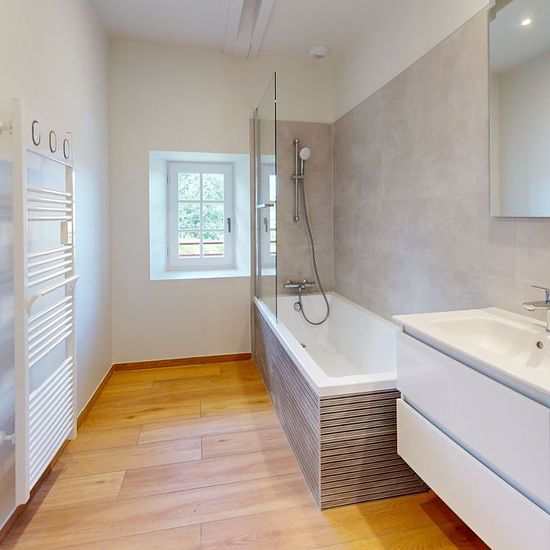 L'ADRESSE Ustaritz Pays Basque vous présente cette maison individuelle T5 d'environ 119 m² habitables (127 m² au sol), entièrement rénovée avec soin par des artisans locaux. Située au calme, sur la Route du Pas de Roland à Itxassou. Au rez-de-chaussée, elle se compose d'une entrée, d'un séjour lumineux avec cuisine semi-ouverte aménagée, d'un cellier/buanderie, d'une chambre avec douche et point d'eau, ainsi que d'un WC indépendant. À l'étage, un escalier en bois massif mène à un palier desservant une salle de bains, un WC séparé, une suite ...