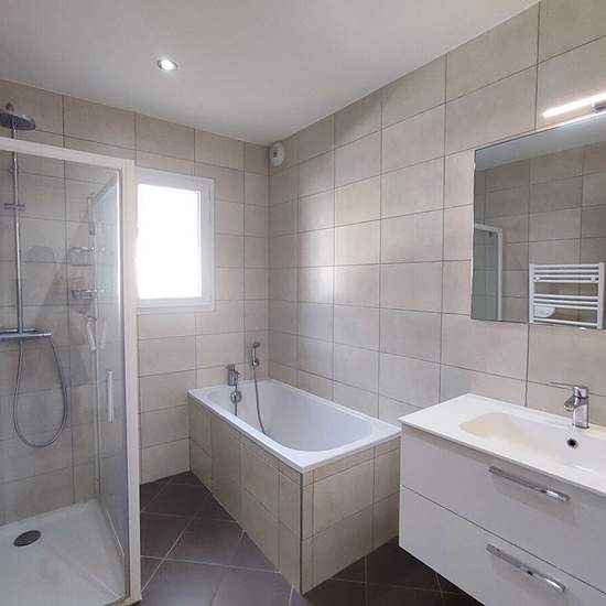 MAISON MODERNE 5 PIECES LA MURETTE - 97.37 m2 - Disponible immédiatement Découvrez cette maison moderne au coeur de la commune de La Murette, dans un quartier résidentiel, à 10 min du centre de Voiron, des axes autoroutiers et de toutes les commodités. Elle se compose au rez-de-chaussée d'un hall d'entrée, d'une suite parentale avec salle d'eau, d'un WC. L'étage accueille une agréable cuisine équipée (four, plaques de cuisson, hotte, évier) ouverte sur un spacieux séjour et une belle terrasse, 3 chambres, une salle de bains avec douche + bai...