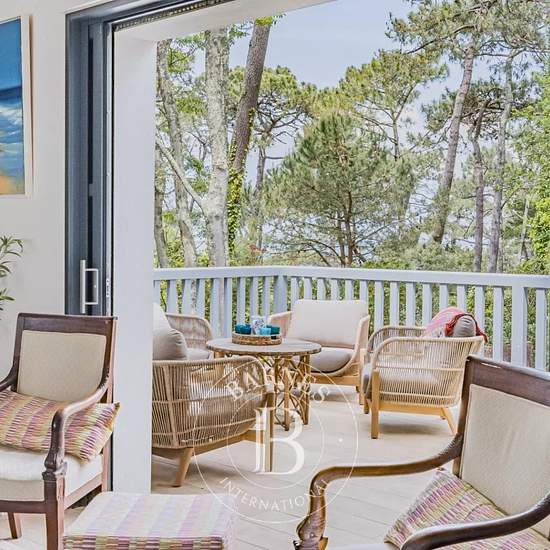 L'agence BARNES Bassin d'Arcachon vous présente la villa « TOULINGUET », une belle villa pylataise de 140 m² située au Pyla-sur-Mer, dans le quartier recherché de la Corniche. À quelques mètres à pied des plages et des restaurants, cette maison bénéficie d'un environnement calme et résidentiel, à proximité immédiate de la Dune du Pilat. Répartie sur deux niveaux, la villa accueille à l'étage un espace de vie traversant avec salon, cuisine aménagée et équipée, tous deux ouverts sur une grande terrasse avec coin repas. La vue sur le Bassin et ...
