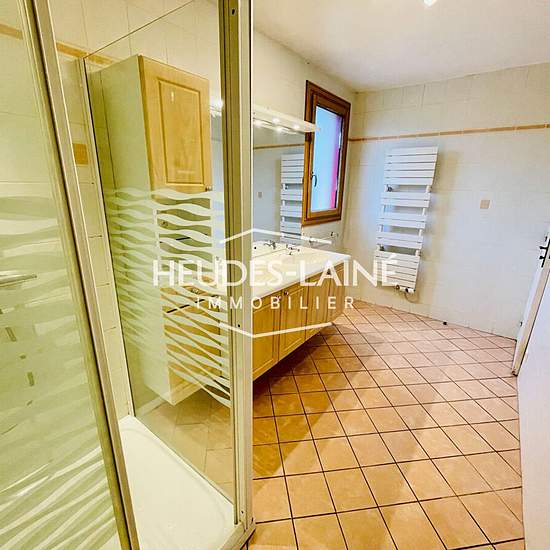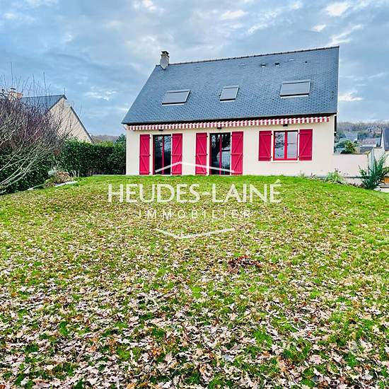 Une maison de type F5/6 de 128 m² environ, comprenant : un sous-sol : garage, cellier, arrière-cuisine/buanderie. Au rez-de-chaussée : entrée, bureau, séjour avec cuisine aménagée et équipée (hotte, plaques vitrocéramiques, four, réfrigérateur, lave-vaisselle) et cheminée d'agrément, une chambre avec placard, salle d'eau, WC. Au premier étage : trois chambres avec grands rangements, salle d'eau, WC.Chauffage et chauffe-eau électriques. Eau et électricité individuelles. Cour, terrasse et jardin clos autour de la maison. Libre le 07 Janvier 20...
