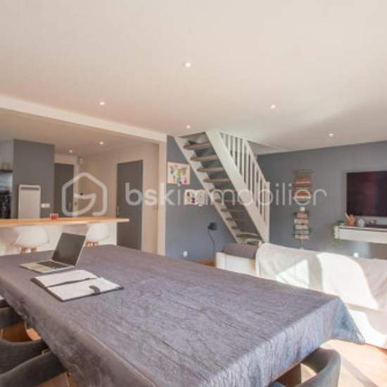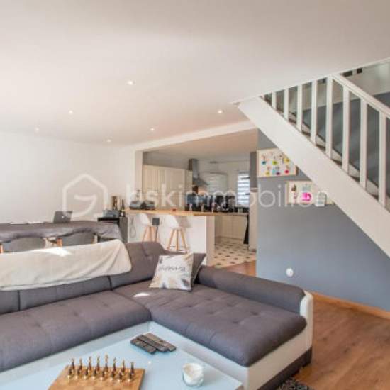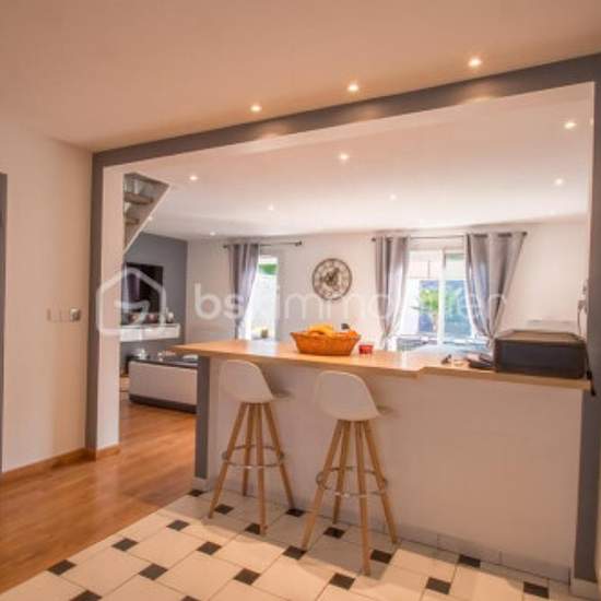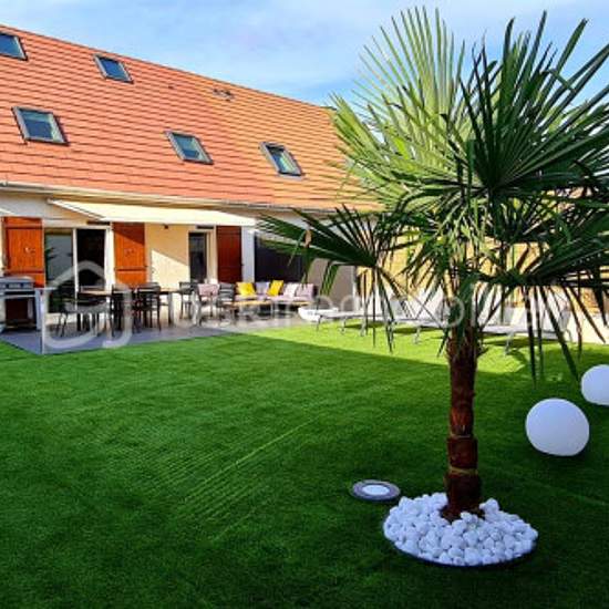 LOCATION MEUBLÉE!!! DANS UN SECTEUR PAVILLONNAIRE , MAISON ACCOLEE D'UN COTE DE 107m2 UTILE (78m2loi carrez)AVEC UN TERRAIN DE 350 M2 SANS VIS A VIS ET AU CALME. Elle se compose d'une entrée, un WC séparé, un accès au garage directement avec porte électrique (buanderie, rangements), une pièce de vie de plus de 44 m2 comprenant une cuisine équipée et aménagée ouverte sur salon / salle à manger LUMINEUX (exposition SUD), avec un accès à la terrasse et au jardin clos et sans vis à vis (pelouse synthétique, spots, palmiers) A l'étage: un palier ...