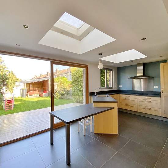 Charmante maison de ville des années 70, idéalement située dans un quartier résidentiel calme et agréable. Le rez-de-chaussée comprend une entrée, un séjour lumineux avec parquet et poêle à bois, ouvert sur une grande cuisine entièrement équipée. Au premier étage, deux chambres, dont une chambre passante attenante à la salle de bains, ainsi qu’un bureau. Le deuxième étage accueille une spacieuse chambre sous combles avec rangements intégrés. Un agréable jardin complète ce bien. Selon la loi Carrez, les chambres et le bureau offrent des surfa...
