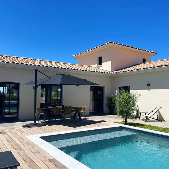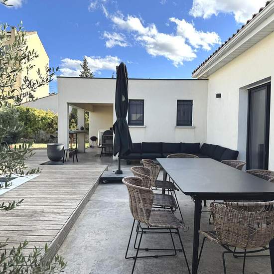Fütterer Property vous propose à MARCORIGNAN : Maison d'architecte de 2019 dans un quartier calme et recherché avec piscine et jardin, loué en meublé. Découvrez cette magnifique maison de standing de 162 m², conçue avec soin et équipée de prestations haut de gamme, disponible à la location entièrement meublée, avec un mobilier et des matériaux de la plus haute qualité. La maison offre un agencement idéal, combinant confort et modernité. Au rez-de-chaussée, vous trouverez un vaste espace de vie lumineux avec une cuisine ouverte, un salon et u...