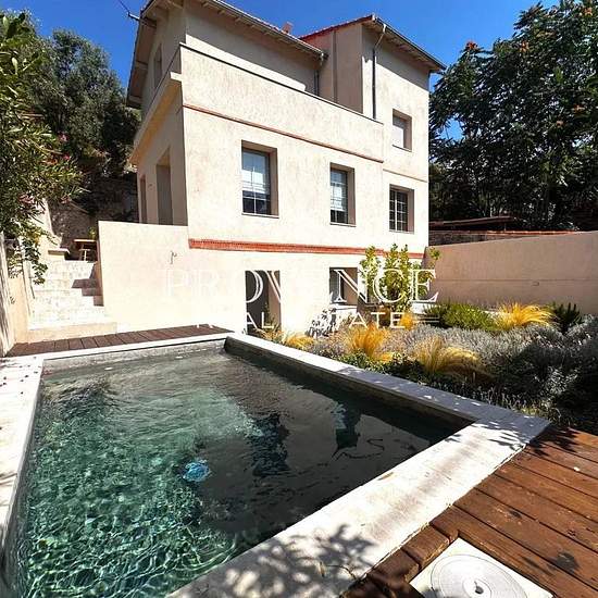 LOCATION MEUBLÉE de standing (ameublement en cours) d'une très jolie maison située dans secteur très recherché entre la CORNICHE KENNEDY et la PLACE DU TERRAIL. D'une surface habitable d'environ 185m², elle comprend un bel espace de vie avec cuisine US entièrement équipée et terrasse conviviale, buanderie, 2 belles chambres avec rangements et salle d'eau, 1 suite master avec dressing, salle de bains/douche, 1appartement indépendant et/ou communiquant. Le tout sur un joli jardin paysager avec terrasses, petite piscine et parking. Situation id...