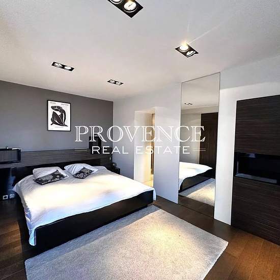 LOCATION MEUBLEE d'une belle villa moderne située sur les hauteur du quartier dans une résidence fermée, au calme et à l'abri des regards, profitant de vues panoramiques de toutes parts. Distribution répartie sur 3 niveaux d'habitation comprenant au rez-de-jardin 2 chambres et 1 salle d'eau, au niveau intermédiaire un grand séjour/salle à manger avec cuisine US équipée ouvert sur la terrasse et la piscine, dressing, buanderie et salle de bains/douche, WC invité. Au dernier niveau se trouve la suite parentale et une chambre mensardée avec sal...