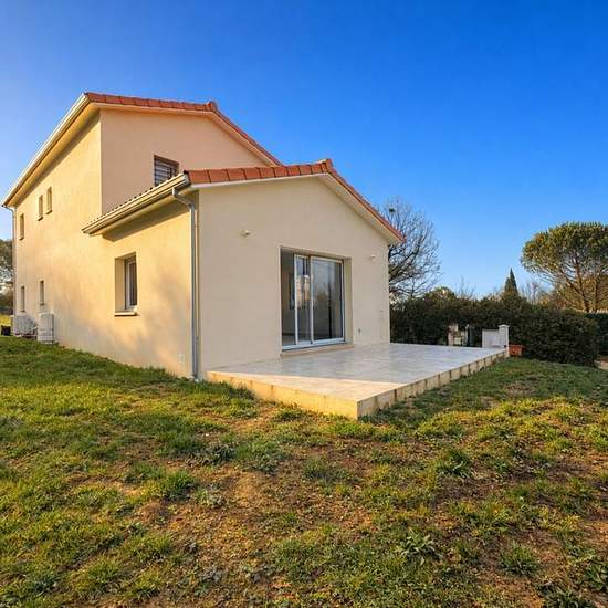 Villa neuve composée, au rez-de-chaussée, d'une entrée avec placards, d'une cuisine meublée et équipée, d'un vaste salon, d'une chambre avec dressing attenant, d'une salle d'eau, d'un cellier / buanderie ainsi que d'un WC indépendant. L'étage dessert trois chambres avec placards, un coin bureau en mezzanine, une salle d'eau et un WC séparé. Le jardin de 1 200 m², entièrement clôturé, engazonné et arboré d'une haie, dispose également d'un abri de jardin. Maison conforme à la norme RT 2020, entièrement climatisée par système gainable. Disponib...