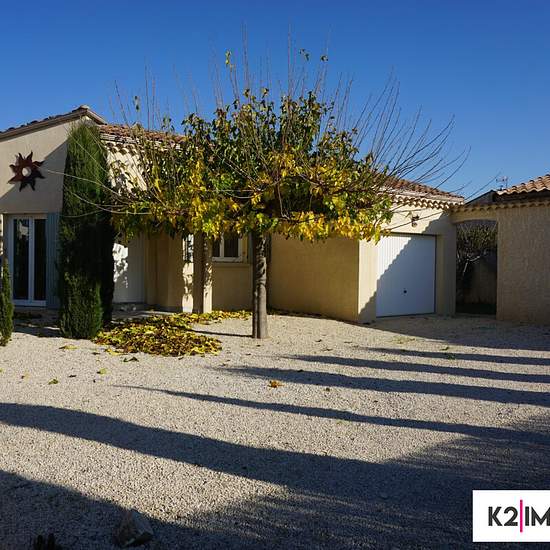 VILLA plain-pied de 104 m², nichée sur un terrain de 991 m², alliant élégance et confort. Avec ses 5 pièces spacieuses, dont 4 chambres, cette propriété est un véritable havre de paix. Séjour de 35 m²,ouvertures en PVC à double vitrage, vue sur le jardin et la terrasse de 15 m². La cuisine aménagée, de type coin cuisine, est un espace fonctionnel et convivial. Cette maison, en excellent état, est non meublée et prête à accueillir vos meubles et votre style. Le chauffage gaz individuel au sol + climatisation reversible assure une température ...
