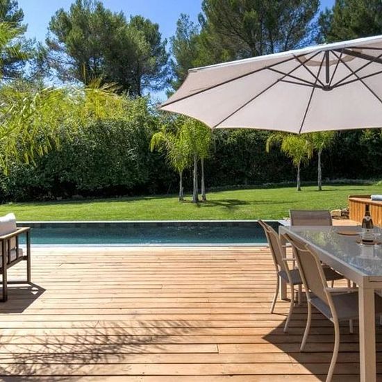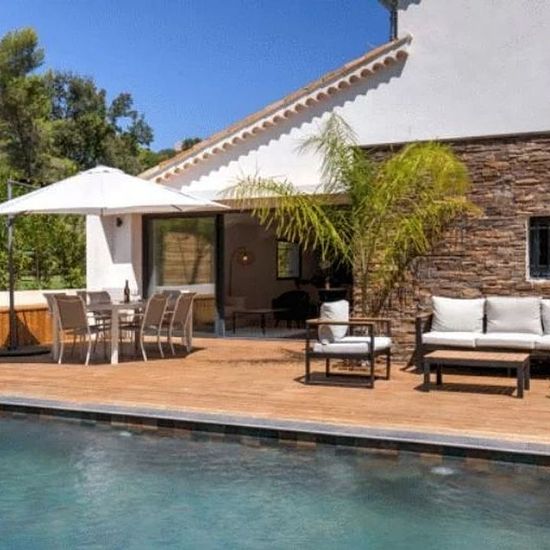 Située dans un quartier prisé et calme, à proximité immédiate de la Mougins School et d’une école Montessori, cette villa contemporaine de 180m², entièrement meublée et climatisée, est disponible à la location de septembre à juin pour une durée de 10 mois. La maison offre un cadre de vie confortable et fonctionnel, avec quatre chambres, chacune disposant de sa salle de bain privative, garantissant intimité et confort à chaque occupant. Le séjour lumineux, ouvert sur le jardin, s’accompagne d’une cuisine moderne entièrement équipée, idéale po...