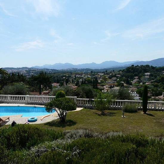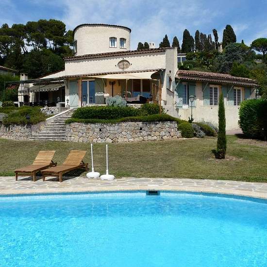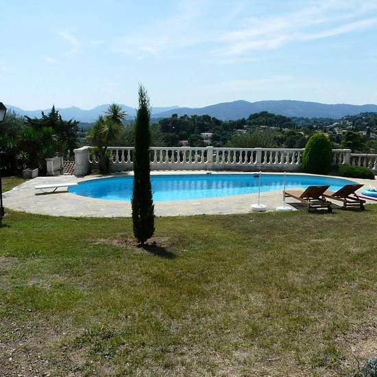 LOCATION SAISONNIERE- Jolie Villa avec beaucoup de charme, située dans un domaine privé, au calme et en position dominante avec une belle vue sans vis à vis et plein sud. La villa de 190 m2 sur un terrain de 1560 m2 avec piscine, comprend : une cuisine toute équipée, une buanderie (lave-linge et sèche-linge)un séjour cathédrale avec cheminée et coin salle à manger, ouvrant sur une terrasse couverte avec BBQ, salon et salle à manger d’été, des WC pour invités, une chambre de maître en suite, lit 160X200, avec salle de douche (double douche), ...