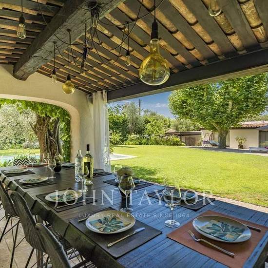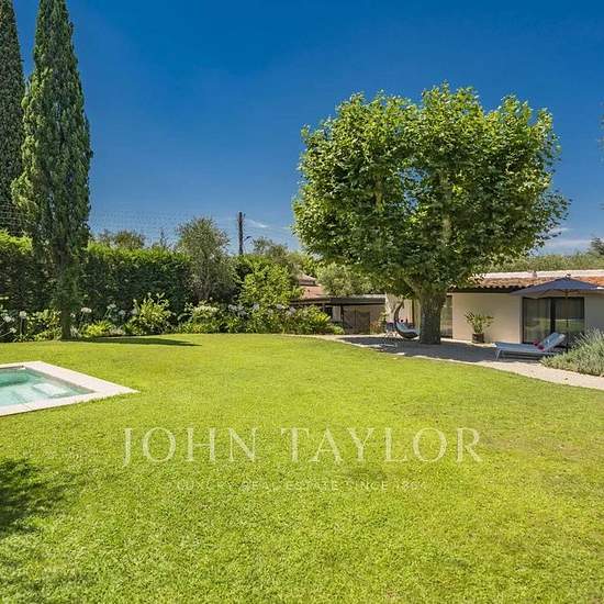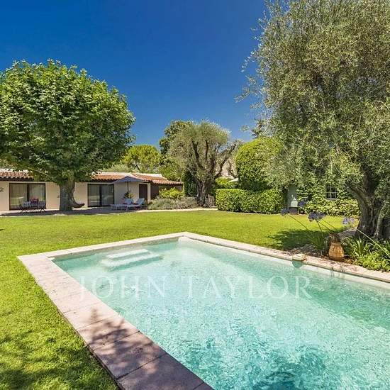 Disponibilité : pour 12 mois ***** Découvrez ce superbe mas provençal entièrement rénové, situé dans un quartier résidentiel à Mougins. La propriété offre un cadre de vie paisible et raffiné, de vastes espaces de réception et un magnifique jardin plat avec piscine chauffée. Rez-de-chaussée : Hall d’entrée avec toilettes invités Salon lumineux avec télévision et cheminée Bibliothèque Cuisine entièrement équipée Salle à manger pouvant accueillir jusqu’à 12 convives, ouvrant sur un patio grâce à une grande baie vitrée Salle de jeux avec bar et ...