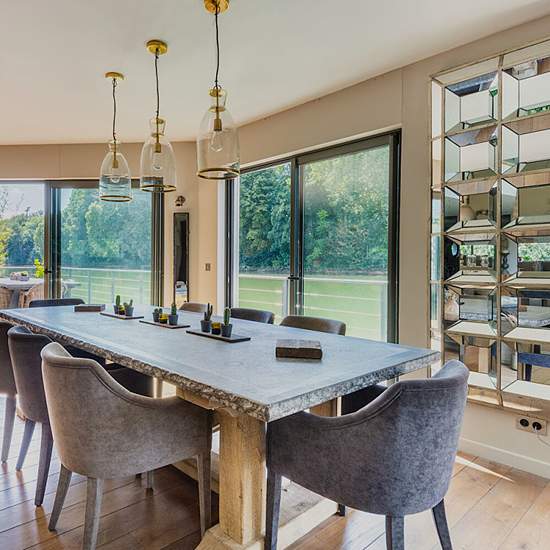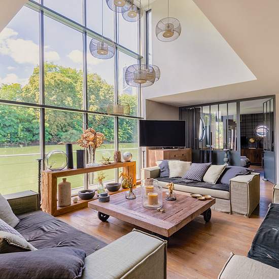 Maison sur l'eau de 5 pièces sur 2 niveaux face à l'île de Puteaux, composé d'un grand double séjour - salle à manger s'ouvrant sur une grande terrasse, une cuisine ouverte entièrement équipée, un cellier, une buanderie, et toujours au rez de chaussée, une chambre, une salle de sport et une salle de douche , puis à l'étage, accessible par un escalier, une suite parentale avec sa salle de bains et sa terrasse, et une 3ème chambre avec sa salle de douche, un espace bureau et des WC. Un havre de paix. Bien rare et exceptionnel, à l'abri des reg...