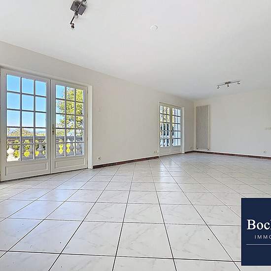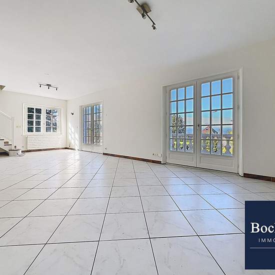 Quartier du Royal Hôtel, dans un cadre verdoyant offrant une superbe vue sur le lac et les montagnes, découvrez cette villa de 5 pièces en parfait état. Elle se compose d'une cuisine entièrement équipée, d'un vaste double séjour lumineux ouvrant sur de belles terrasses, de trois chambres avec placards intégrés, d'une salle de bains, d'une salle de douche, de deux WC, d'une buanderie et d'un garage. Le bien bénéficie d'un chauffage central au gaz et est édifié sur un terrain clos et paysager de 1 981 m². Loyer mensuel : 2300 euros + P. Charge...