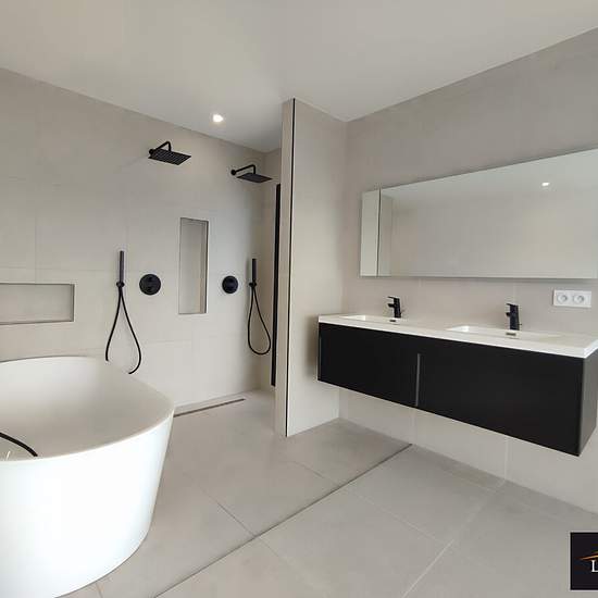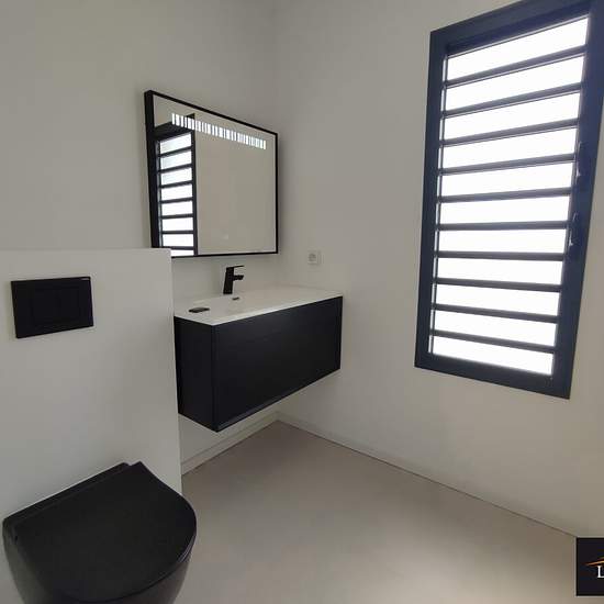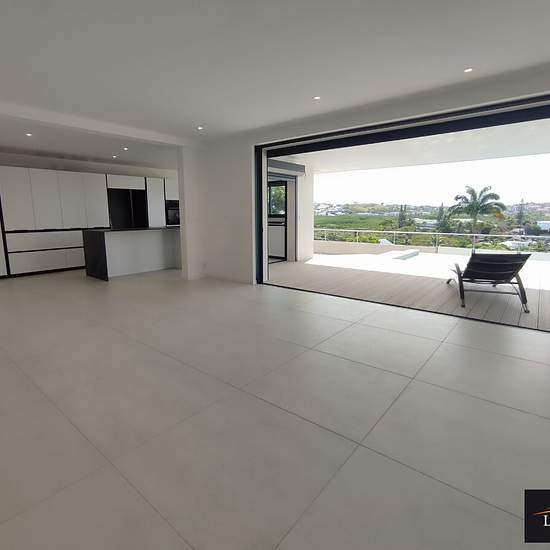 Située en impasse, au calme absolu, cette villa F5 neuve d’environ 150 m² habitables sur deux niveaux Elle offre de très beaux volumes, une belle luminosité et des prestations soignées. Le rez-de-chaussée propose un vaste séjour lumineux ouvert sur une cuisine moderne avec îlot central, nombreux rangements, buanderie attenante et WC indépendant. L’espace de vie se prolonge sur un large deck couvert qui entoure une piscine carrelée à débordement offrant une vue dégagée et une exposition sunset, ainsi qu’un agréable espace détente. À l’étage, ...