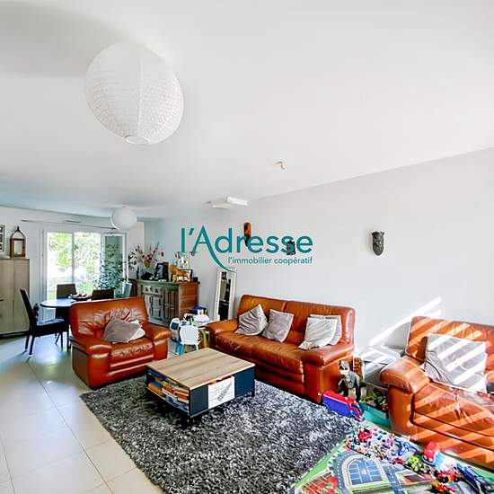 Jolie construction traditionnelle mitoyenne d'un côté, élevée sur un terrain de 200 m² Entrée dans séjour, cuisine ouverte aménagée, wc. Etage : 3 chambres, salle de bains et wc. Garage attenant, terrasse. En très bon état !