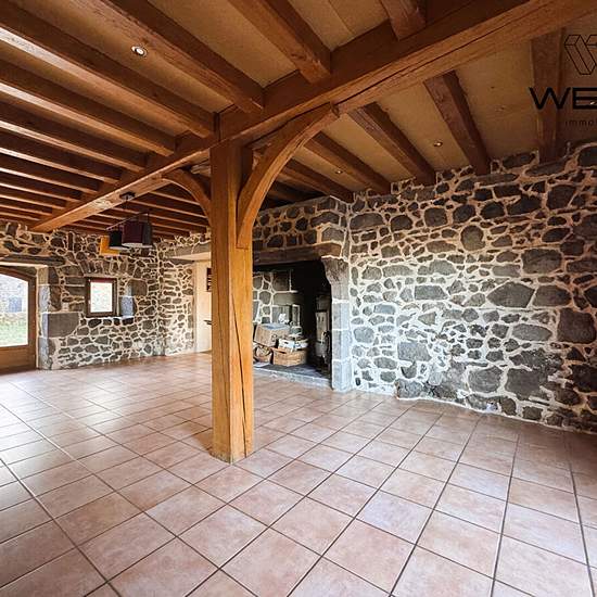 A Olby, maison de caractère de 142m² sur environ 1000m² de terrain, comprenant : Une entrée principale avec un hall d'entrée, WC indépendant, une cuisine semi-ouverte sur salon-séjour avec poêle à bois dans cantou et un accès sur extérieur. Une buanderie-chaufferie, une cave voutée. Au demi-palier supérieur : une chambre. Au demi-palier supérieur : une chambre avec dressing annexe. Au demi-palier supérieur : une salle de bains avec WC ainsi qu'une chambre. Chauffage au sol fioul, plus convecteurs électriques et poêle à bois. Un abris pour vo...