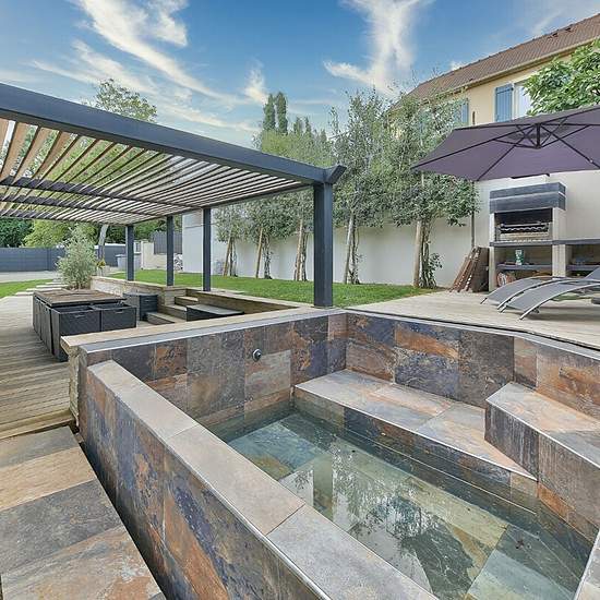 A propos de ce bien Quartier de la Chapelle a 5 mn de l'acces A 13 / A 14, Maison neuve meublée et équipée batie en 2014 de 188.02 m2 habitables et 216.48 m² au sol sur 800 m2 environ de terrain avec jacuzzi.~Entree, reception cathédrale de 80 m² avec cheminée ethanol, cuisine ouverte avec bar, suite avec sdb/sdd,wc, Etage : palier bureau, salon tv, deux suites avec une sdb/sdd commune. Un grenier pour du rangement.~Deux jolies terrasses dont une avec pergola, pool house avec salle de sport.~Jacuzzi exterieur chauffé neuf.~Emplacements de s...