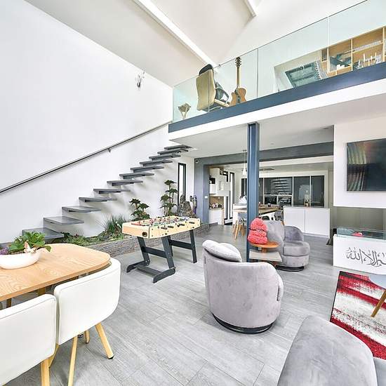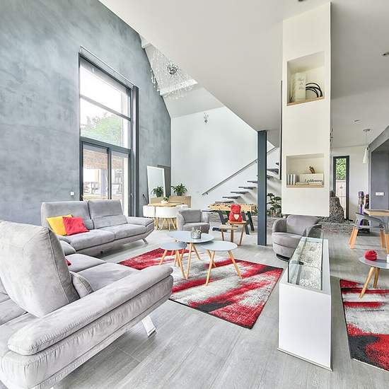 A propos de ce bien Quartier de la Chapelle a 5 mn de l'acces A 13 / A 14, Maison neuve meublée et équipée batie en 2014 de 188.02 m2 habitables et 216.48 m² au sol sur 800 m2 environ de terrain avec jacuzzi.~Entree, reception cathédrale de 80 m² avec cheminée ethanol, cuisine ouverte avec bar, suite avec sdb/sdd,wc, Etage : palier bureau, salon tv, deux suites avec une sdb/sdd commune. Un grenier pour du rangement.~Deux jolies terrasses dont une avec pergola, pool house avec salle de sport.~Jacuzzi exterieur chauffé neuf.~Emplacements de s...