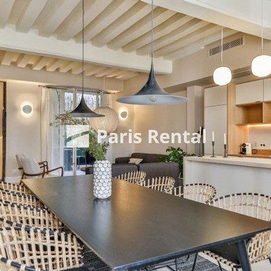 Appartement n° 59574Bail code civil uniquementLuxueux Hotel Particulier en quadruplex situé dans le 6e arrondissement de Paris , dans le quartier de Saint-Germain des Prés. Il s'agit d'un immeuble fin XVIIème construit par la ville de Paris pour héberger les artistes qui travaillaient au théâtre de l'odéon, qu'on appelait à l'époque « Comédie Française ». Le 1er étage comporte un large séjour décoré avec soin, une cuisine ouverte entièrement équipée et très fonctionnelle. Le salon donne sur une terrasse calme et arborée, un vrai écrin de ver...