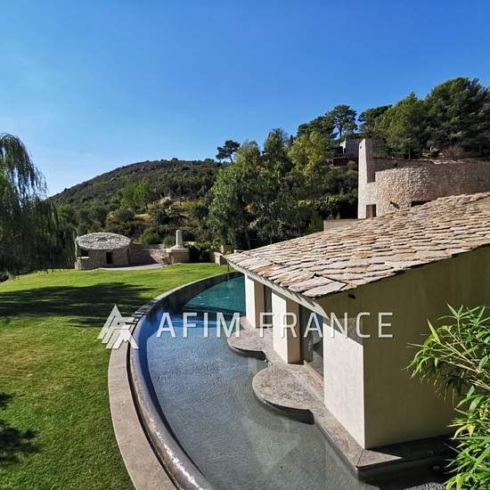 Peille, à 20 minutes de Monaco dans un écrin de verdure au calme absolu, magnifique maison d'architecte d'environ 300 m² au centre d'un terrain arboré de près de 7 000 m². À l'intérieur : la villa est composée d'une pièce à vivre avec cuisine équipée, une salle à manger avec ouverture sur la grande terrasse et la piscine arrondie, un impressionnant séjour cathédrale avec cheminée. Au total, il y a 4 chambres, 3 de standing avec salle de douches ou de bains et une chambre en sous-sol avec salle de douches également. Nombreuses terrasses. À l'...