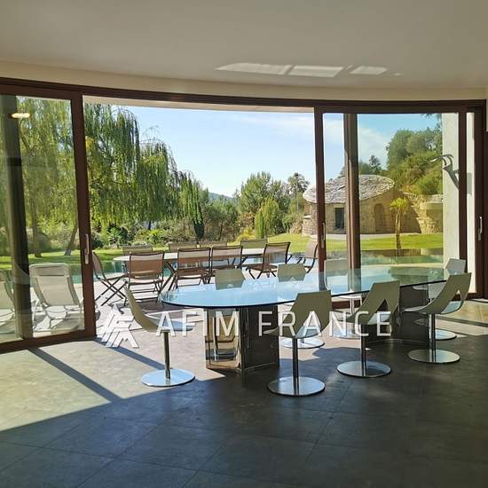 Peille, à 20 minutes de Monaco dans un écrin de verdure au calme absolu, magnifique maison d'architecte d'environ 300 m² au centre d'un terrain arboré de près de 7 000 m². À l'intérieur : la villa est composée d'une pièce à vivre avec cuisine équipée, une salle à manger avec ouverture sur la grande terrasse et la piscine arrondie, un impressionnant séjour cathédrale avec cheminée. Au total, il y a 4 chambres, 3 de standing avec salle de douches ou de bains et une chambre en sous-sol avec salle de douches également. Nombreuses terrasses. À l'...