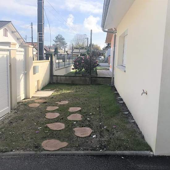 PESSAC - QUARTIER NOES Maison récente de 5 pièces dans un quartier calme comprenant au rez de chaussée une entrée avec placards, une pièce de vie avec une cuisine aménagée, un cellier, une chambre parentale, un WC, un garage et un jardin. A l'étage, trois chambres avec placards, un WC et une salle de bain. BUS 23-35-42-44-54 à proximité et également le tram à 15 minutes. Pour les visites merci de bien vouloir contacter Madame Blondeau au .